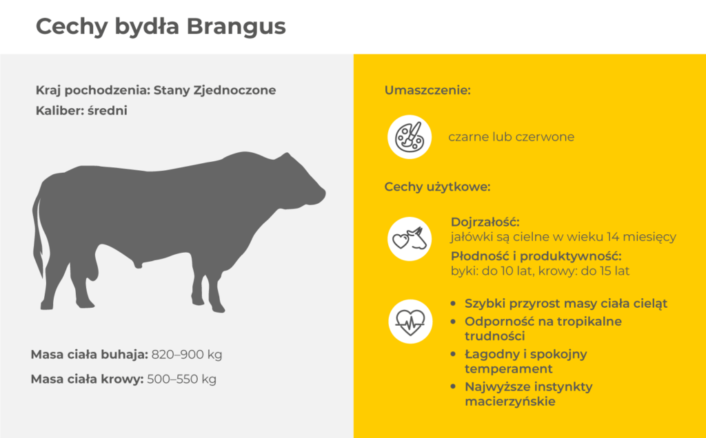 Cielęta tej rasy mają zazwyczaj wyższą masę urodzeniową niż cielęta ras rodzicielskich, są jednak mniej żywotne i gorzej znoszą odstawienie. Dorosłe zwierzęta są odporne na warunki i nieprawidłowe żywienie, jednak w warunkach stresowych mogą się robić nerwowe. Niemniej jednak, rasa Brangus jest bardzo wszechstronna i doceniana przez rosnące grono hodowców i konsumentów na całym świecie.